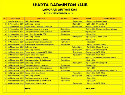 Sparta Badminton Club Laporan Kas Dan Persediaan Shuttlecock Sparta Bulan November 2017