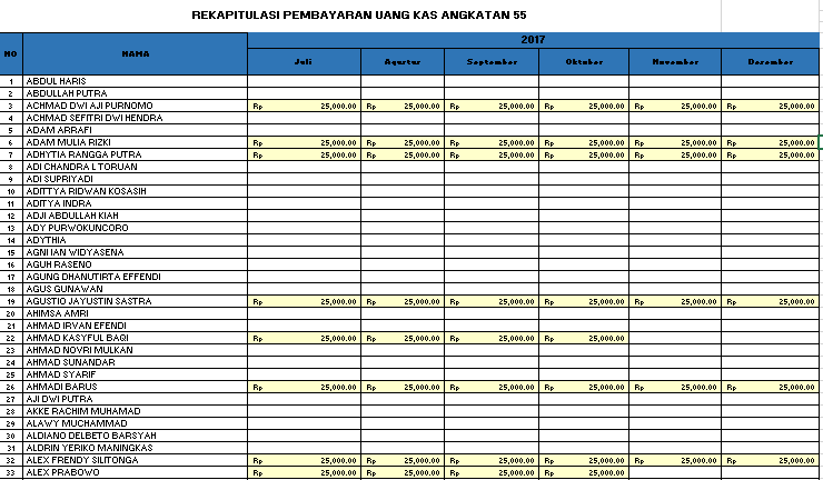 Corps Alumni Hang Tuah Lima Surabaya Laporan Kas Periode Okt 2017