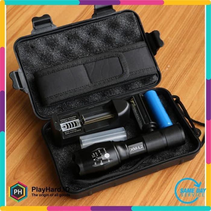 Paket Set Senter Led Tactical Cree Xm L2 8000 Lumens Hitam Shopee Indonesia