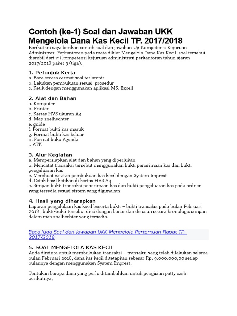 Soal Dan Jawaban Ukk Mengelola Dana Kas Kecil Tp 2017 2018 Anugerah Dino