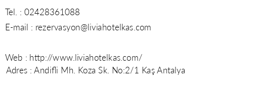 Livia Hotel Telefon Numarasi Ve Iletisim Numarasi Kas Turkiye Hotel Contact